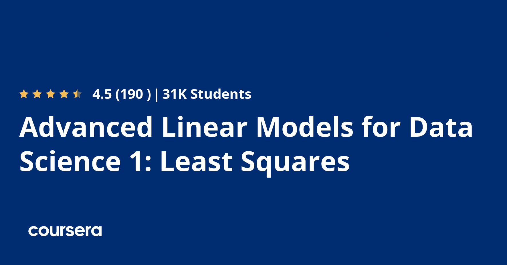 Offered by Johns Hopkins University. Welcome to the Advanced Linear Models for Data Science Class 1: Least Squares. This...
