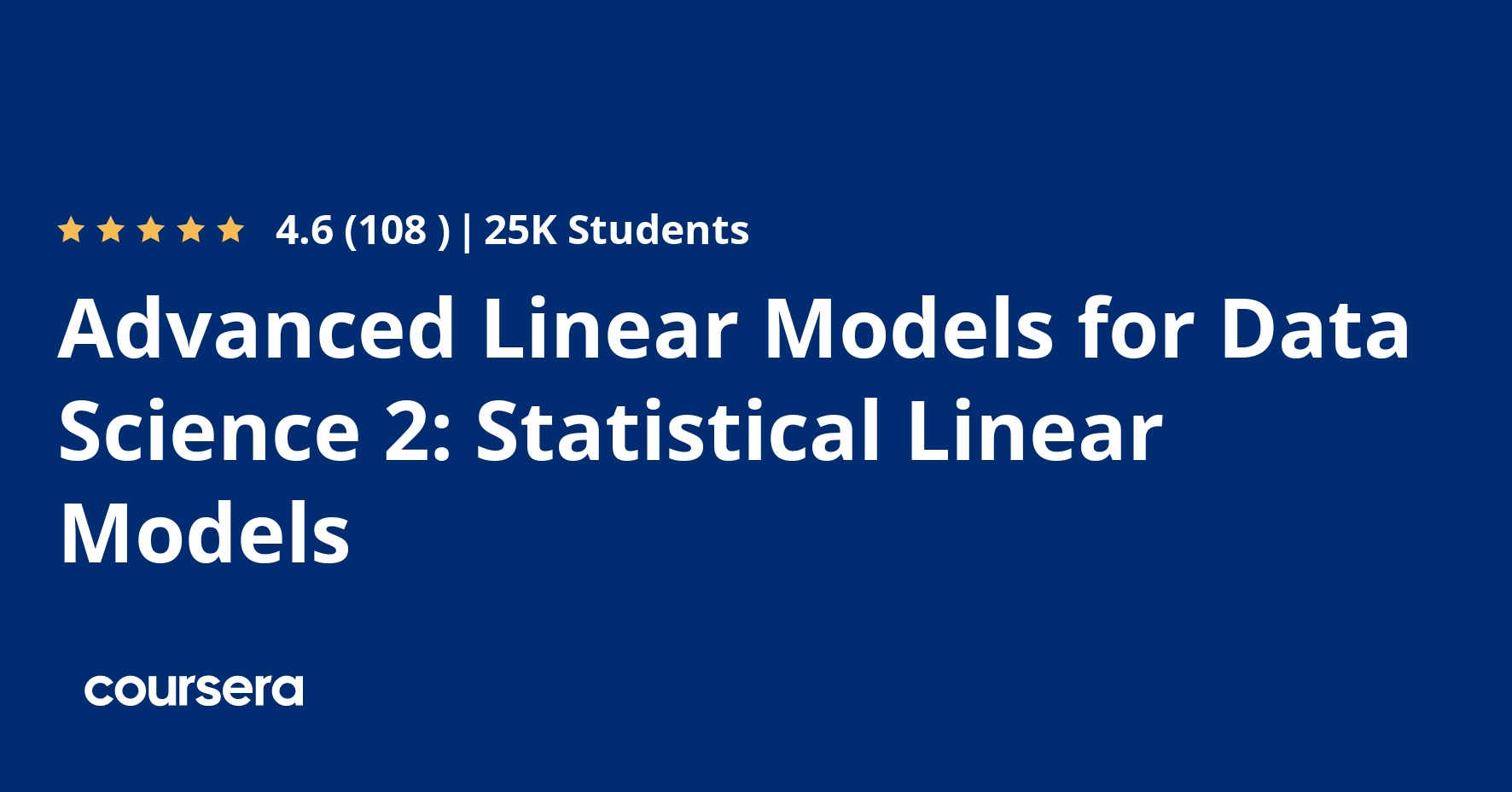 Offered by Johns Hopkins University. Welcome to the Advanced Linear Models for Data Science Class 2: Statistical Linear ...