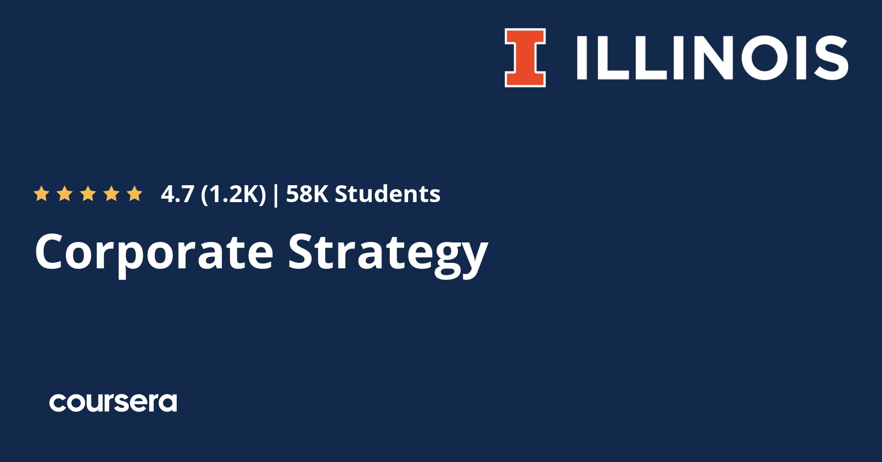 現代のビジネス環境で企業がいかに価値を創造・維持するかを学べるコースです。イリノイ大学アーバナ・シャンペーン校がCourseraで提供しており、単一事業の管理を超えた企業全体の戦略思考を身につけられます。