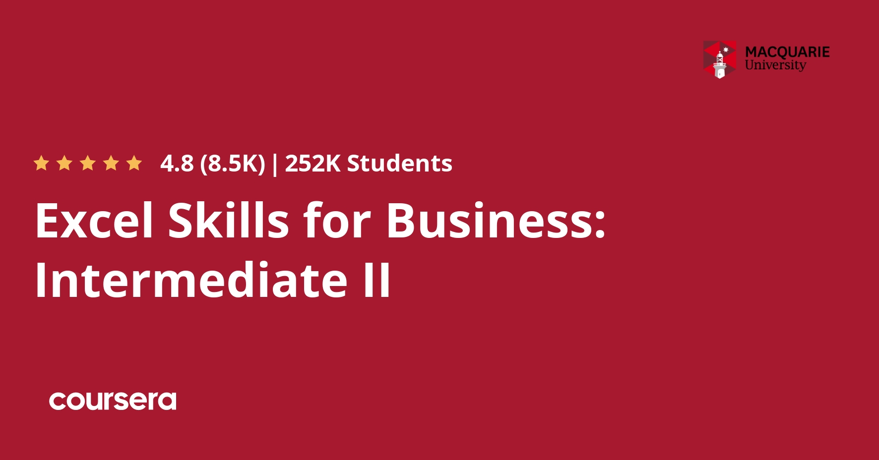 Macquarie UniversityがCoursera上で提供するExcel専門コースです。世界中のあらゆる職場で使われているスプレッドシートソフトウェアを、自信を持って操作できるスキルが身につきます。