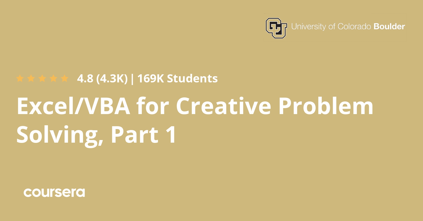 Offered by University of Colorado Boulder. "Excel/VBA for Creative Problem Solving, Part 1" is aimed at learners who are...