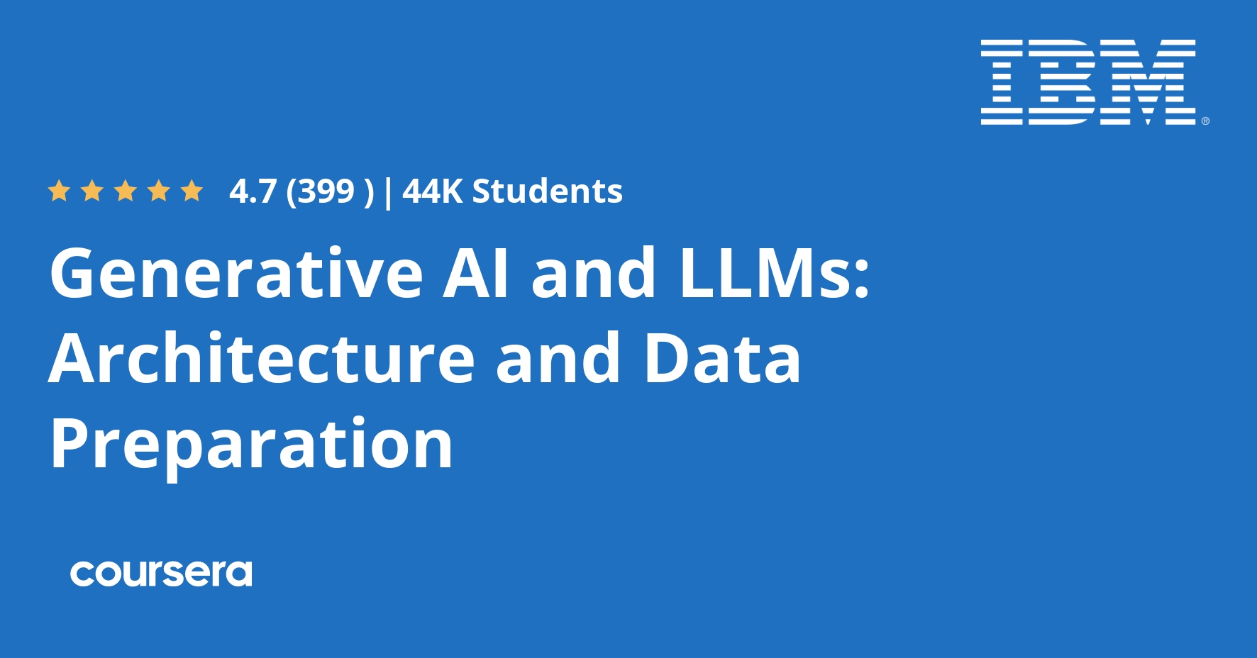 Offered by IBM. Ready to explore the exciting world of generative AI and large language models (LLMs)? This IBM course, ...