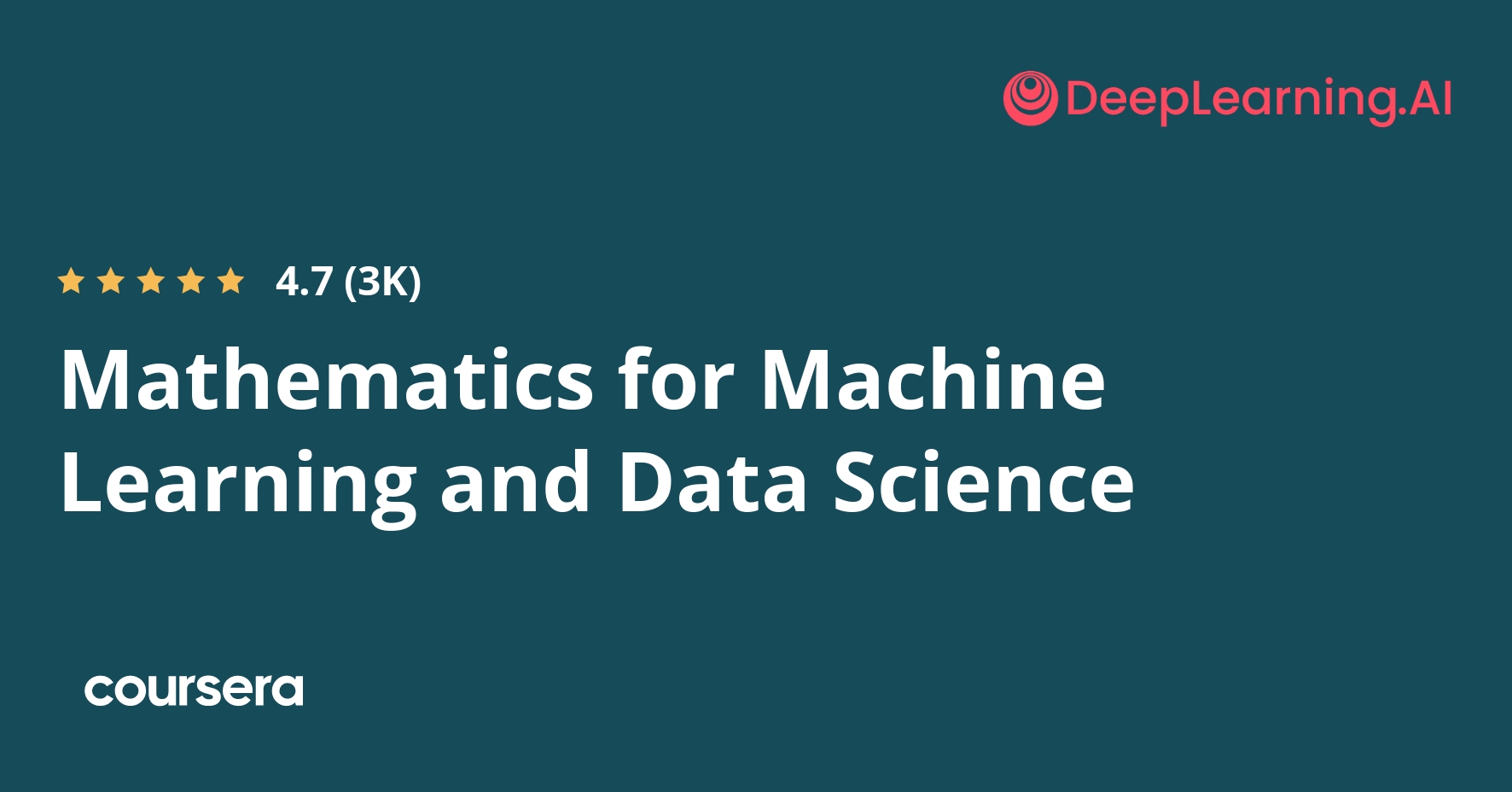 Offered by DeepLearning.AI. Master the Toolkit of AI and Machine Learning. Mathematics for Machine Learning and Data Sci...