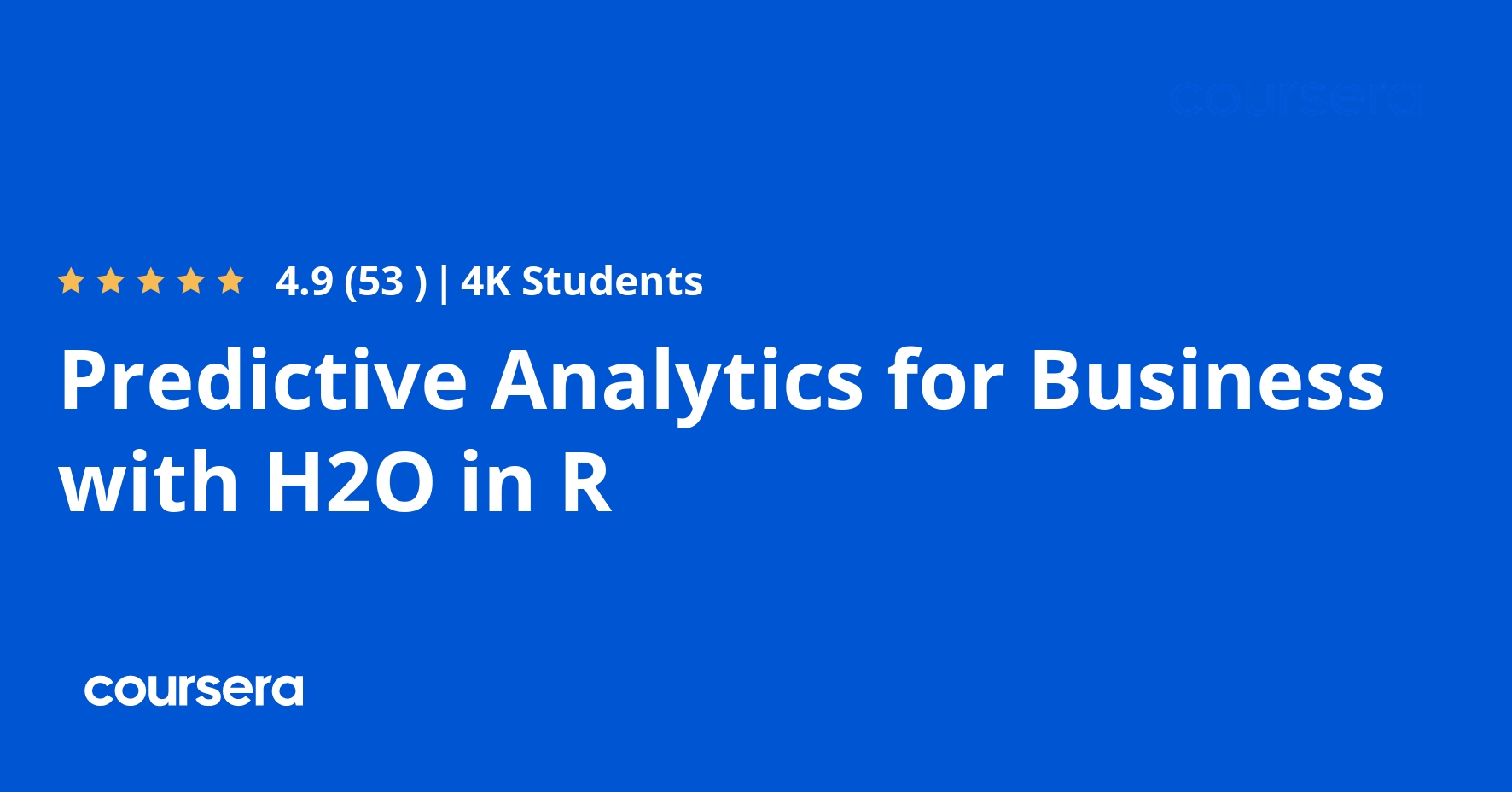 | コース名 | Coursera H2O in Rビジネス予測分析コース |